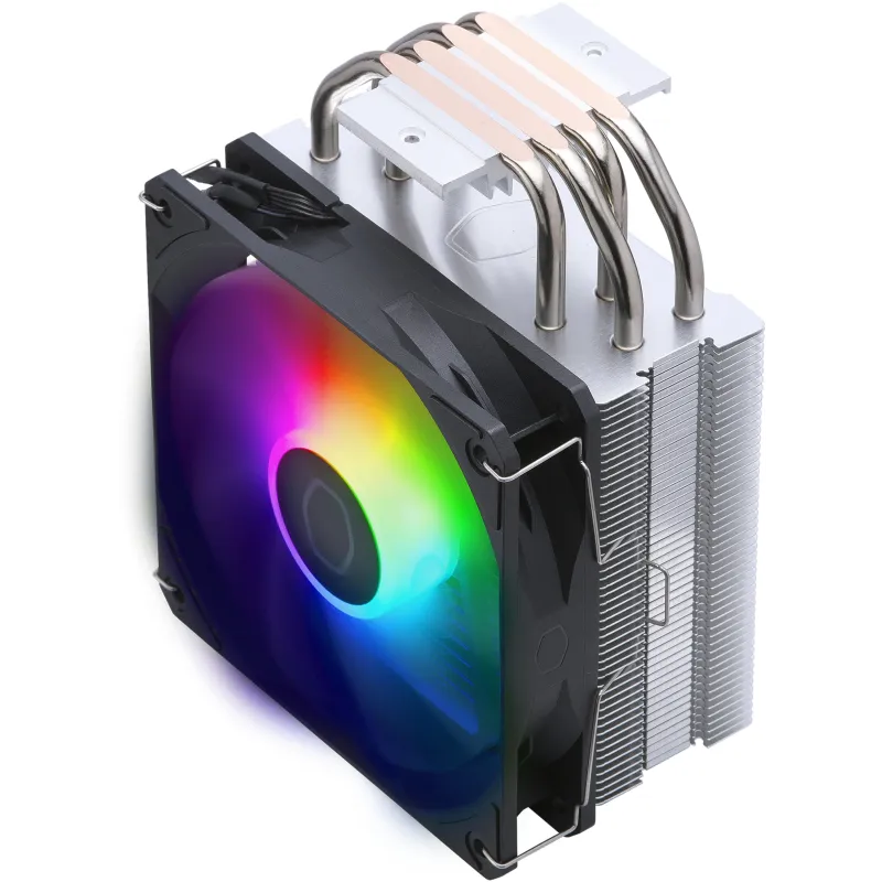 Con un ventilador 120 mm de alto rendimiento, el Refrigerador de aire Cooler Master Hyper 212 Spectrum V3 asegura una excelente circulación de aire, alcanzando hasta 122,2 m³/h. Esta capacidad de ventilación permite mantener el procesador en temperaturas óptimas incluso durante sesiones exigentes de gaming o edición. El ventilador cuenta con modulación PWM, lo que permite ajustar su velocidad entre 650 y 1750 RPM según la carga del sistema, proporcionando un equilibrio perfecto entre refrigeración y silencio. Además, su tecnología de rodamiento tipo rifle garantiza un funcionamiento duradero y estable.