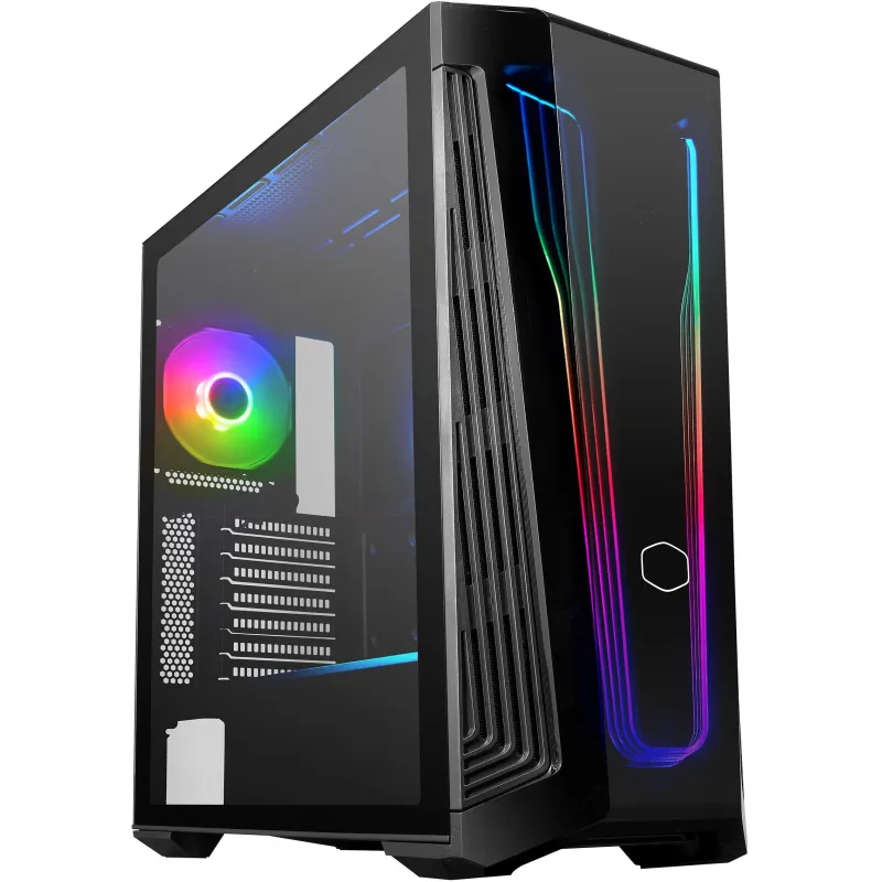 DISEÑO IRIDISCENTE VÍVIDO: Un diseño vívido e iridiscente abarca todo el panel frontal del MasterBox 540. Las tiras ARGB personalizables irradian detrás de la fachada transparente para una impresionante exhibición de luz. Las tiras ARGB se pueden configurar para que coincidan con el esquema de color del sistema interno con un controlador incluido, y también se sincronizarán con la placa base para un potencial ilimitado de personalización.