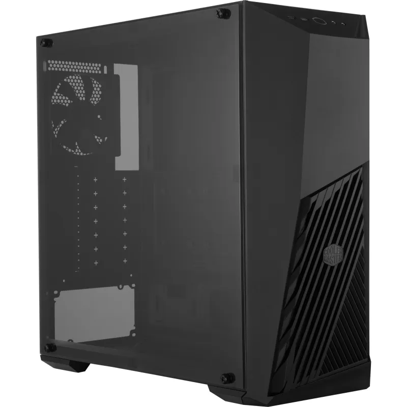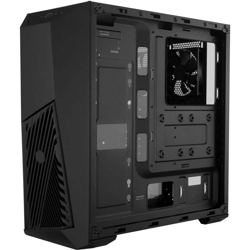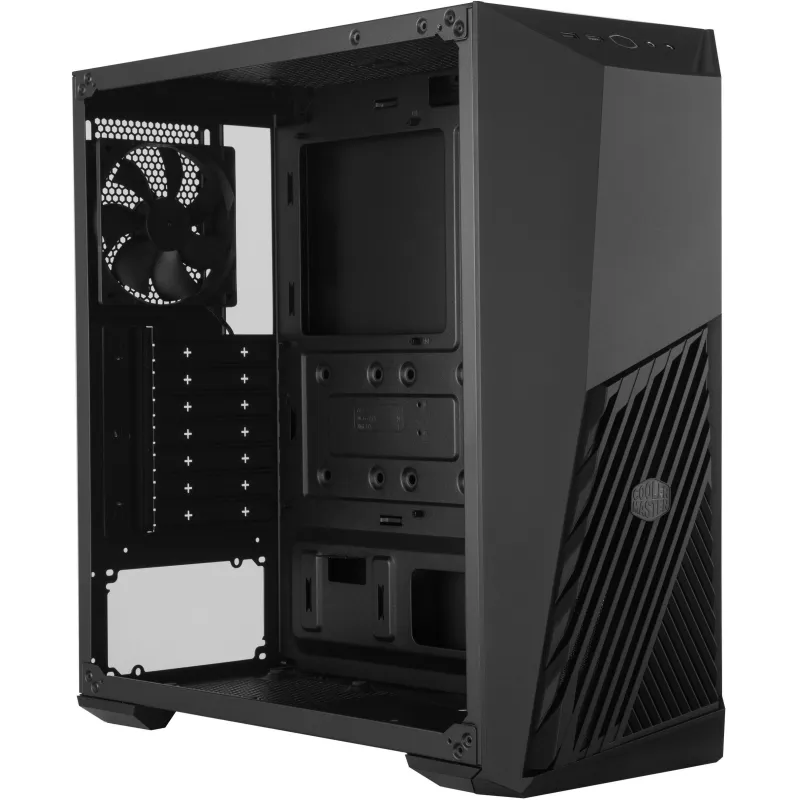 TU ÁNGULO DE ATAQUE: Gaming está en el núcleo del MasterBox K501L. Con un ventilador iluminado contra la ventilación del panel frontal en ángulo, habla de su carácter competitivo. El soporte para hardware de juegos como tarjetas gráficas largas, mucho almacenamiento y refrigeración líquida tienen prioridad en el K501L, dejando aún espacio para futuras actualizaciones.