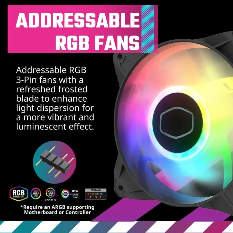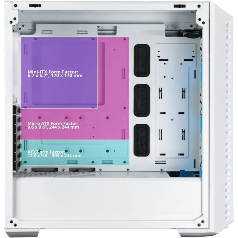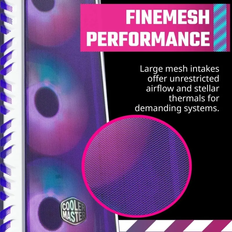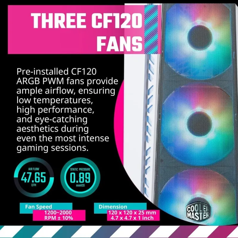 MASTERBOX 520 ES EL CHASIS IDEAL PARA GAMERS NOVATOS Y EXPERIMENTADOS: MasterBox 520 es el chasis ideal tanto para gamers novatos como experimentados, proporcionando a los usuarios múltiples opciones en el diseño del chasis para satisfacer diferentes necesidades. Ya sea que valores al máximo el rendimiento del sistema y las experiencias de juego de alta calidad, o la estética deslumbrante y una apariencia que destaque, MasterBox 520 tiene algo para ti. Con tres ventiladores ARGB de 120 mm preinstalados, tu sistema cobra vida con impresionantes efectos de iluminación, completamente personalizables para que coincidan con tu tema o preferencia. Mejoras mecánicas adicionales, como un panel superior removible y un robusto filtro de polvo, aseguran una experiencia de instalación agradable y sin complicaciones.