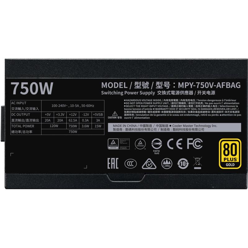 Fuente de Alimentación Cooler Master V750 V2 ATX 80 Plus Gold 750W modular eficiente al 90% silenciosa y con protección, Negro