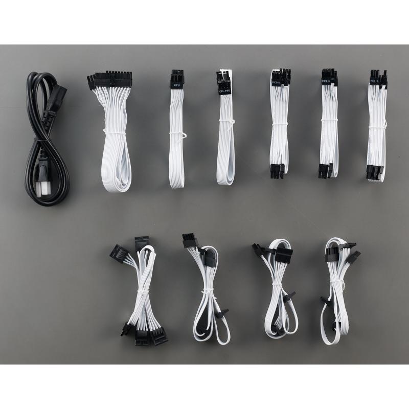 En términos de conectividad, cuenta con un conector de energía para tarjeta madre de 24 pines, 12 conectores de energía SATA, 4 conectores Molex, y 6 conectores PCI Express (6+2 pines), permitiendo una amplia compatibilidad con diferentes dispositivos. Además, su cableado modular facilita una instalación limpia y organizada.