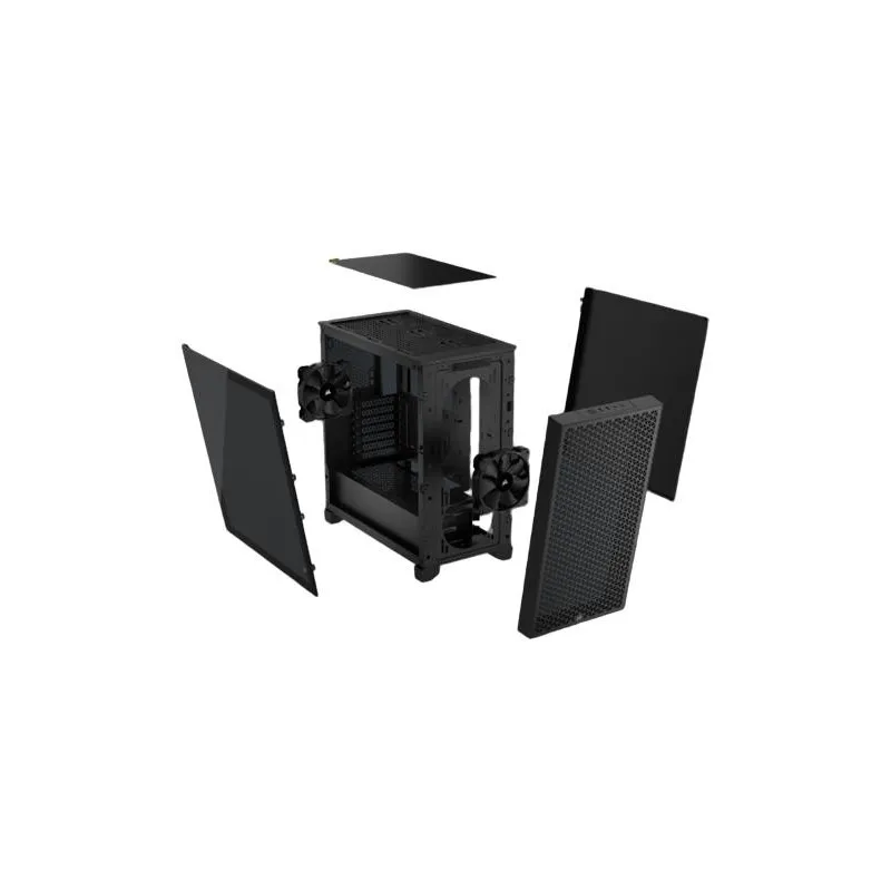 CHASIS PARA PC SEMITORRE AIRFLOW 3000D, NEGRO: El CORSAIR 3000D AIRFLOW presenta un chasis ATX semitorre con un eficiente diseño de gran caudal de aire, que incluye dos ventiladores CORSAIR SP120 preinstalados que proporcionan un caudal de aire excepcional.