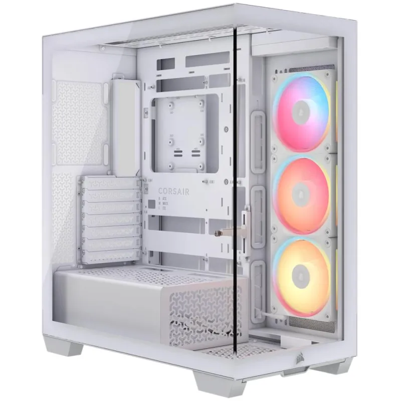 Torre Corsair 3500X LX-R RGB iCUE LINK Blanca, ideal para formato E-ATX , soporte para ventiladores 140 mm, radiador 360 mm y panel de vidrio templado
