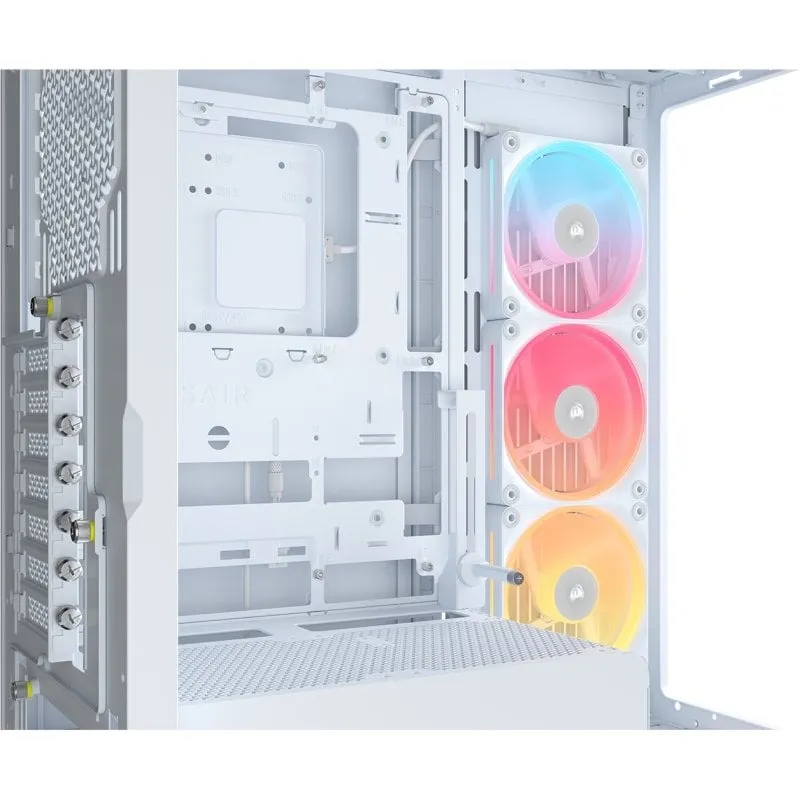 La Torre Corsair 4500X LX-R RGB Blanca incluye un avanzado sistema de refrigeración compuesto por ventiladores 140 mm instalados en posiciones estratégicas: dos en el lateral, dos en la parte superior y uno en la parte trasera. Esta configuración asegura un flujo de aire eficiente en todo el chasis, manteniendo temperaturas óptimas incluso en sesiones de uso intensivo. Además, es compatible con radiadores de 360 mm, lo que permite ampliar las opciones de refrigeración líquida para configuraciones más exigentes. Gracias a esta ventilación, los componentes internos operan de forma más estable y prolongan su vida útil, convirtiendo esta torre en una elección ideal para entusiastas del rendimiento y el overclocking.