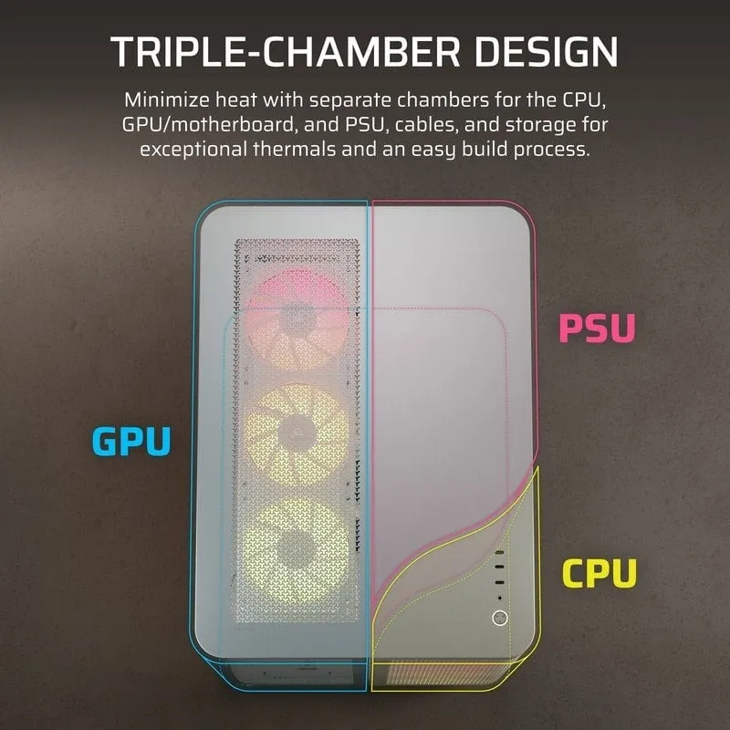 Torre Corsair AIR 5400 RGB LX-R iCUE Link Blanca Link Con Triple Cámara de Vidrio Templado
