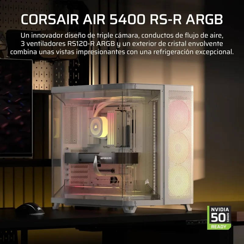Torre Corsair AIR 5400 RS-R ARGB Blanca con ventiladores ARGB 120 mm, panel de vidrio templado y soporte para refrigeración líquida 360 mm