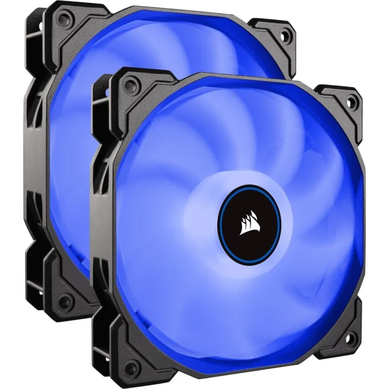 AF SERIES™, AF140 LED (2018), AZUL, 140 MM, PAQUETE DOBLE: Los ventiladores de refrigeración CORSAIR AF140 LED combinan una iluminación LED viva, presión estática elevada, poco ruido y flujo de aire alto para ofrecer un magnífico rendimiento de refrigeración en todo su PC.