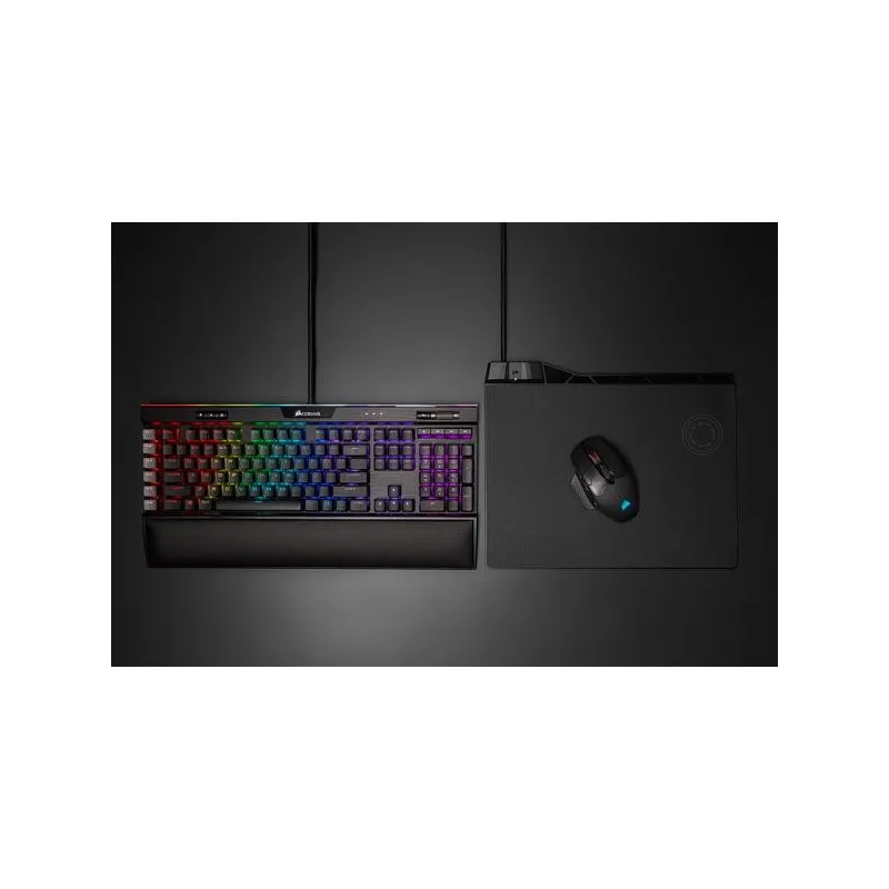 CARGA INALÁMBRICA QI: Cargue sin cables mediante cualquier dispositivo de carga compatible con Qi como la alfombrilla CORSAIR MM1000.
