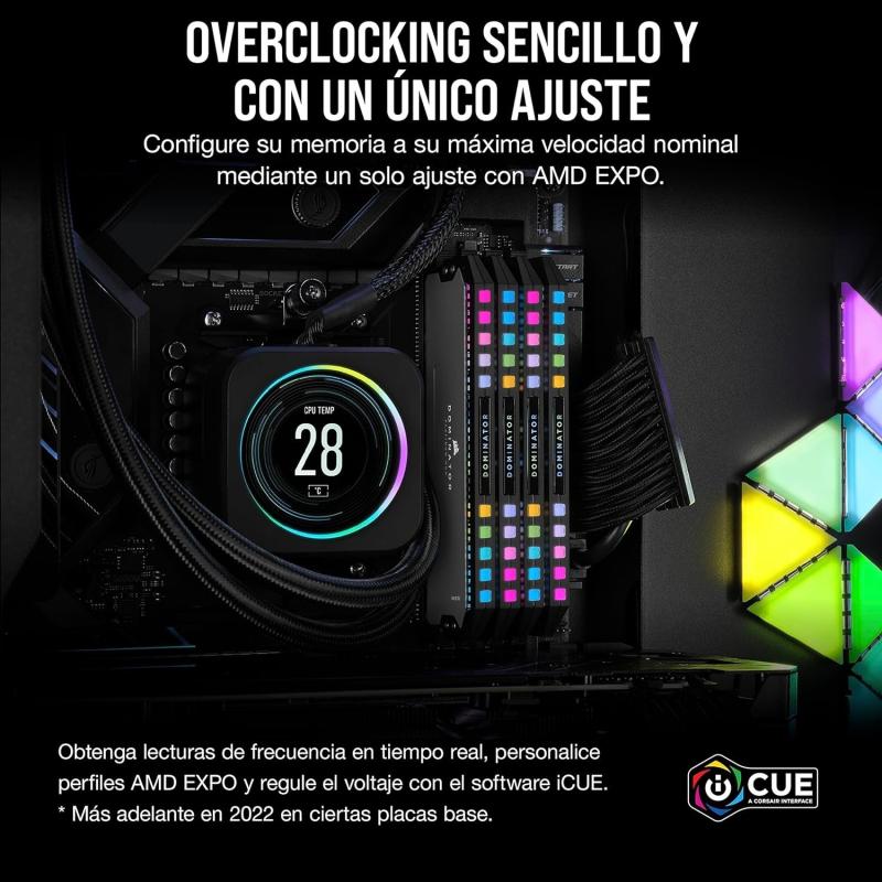 PERFILES ® EXPO PERSONALIZADOS DE AMD: Libérese del tedioso proceso de ajustar manualmente la configuración de rendimiento al guardar sus propios perfiles EXPO de AMD mediante iCUE. Personalice con facilidad y a medida sus perfiles de configuración por aplicación o por tarea para mejorar la eficiencia.