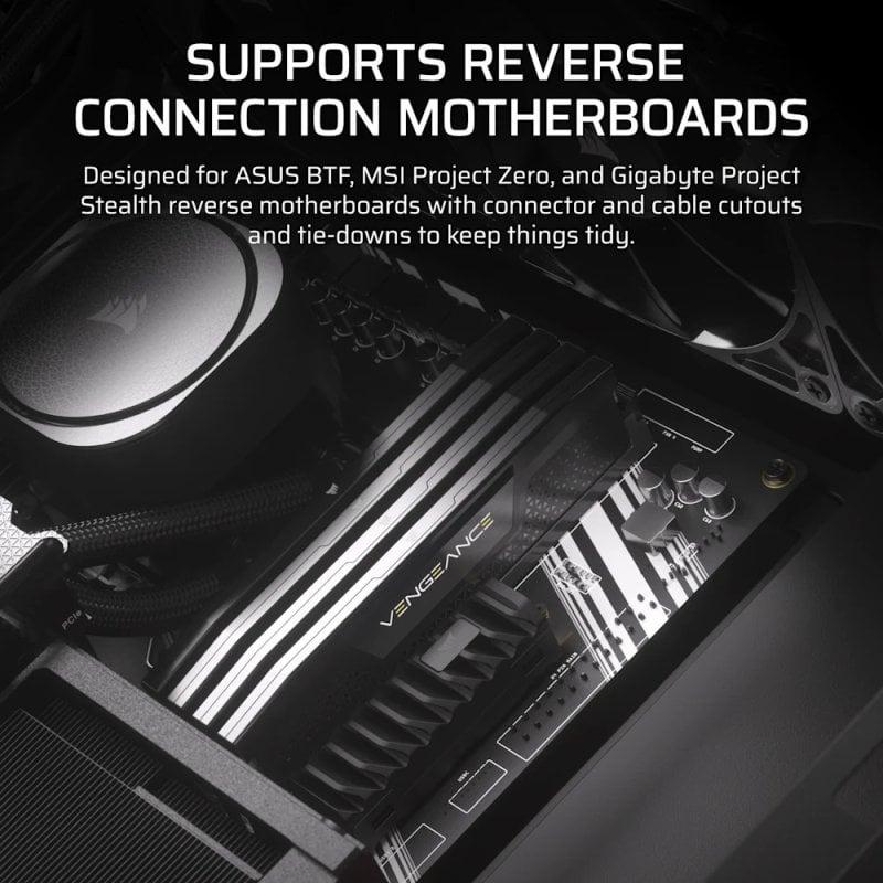 SIN CABLES VISIBLES: Totalmente compatible con placas base de conector inverso de Asus, MSI y Gigabyte, permitiendo un flujo de aire sin obstrucciones y una construcción súper limpia.
