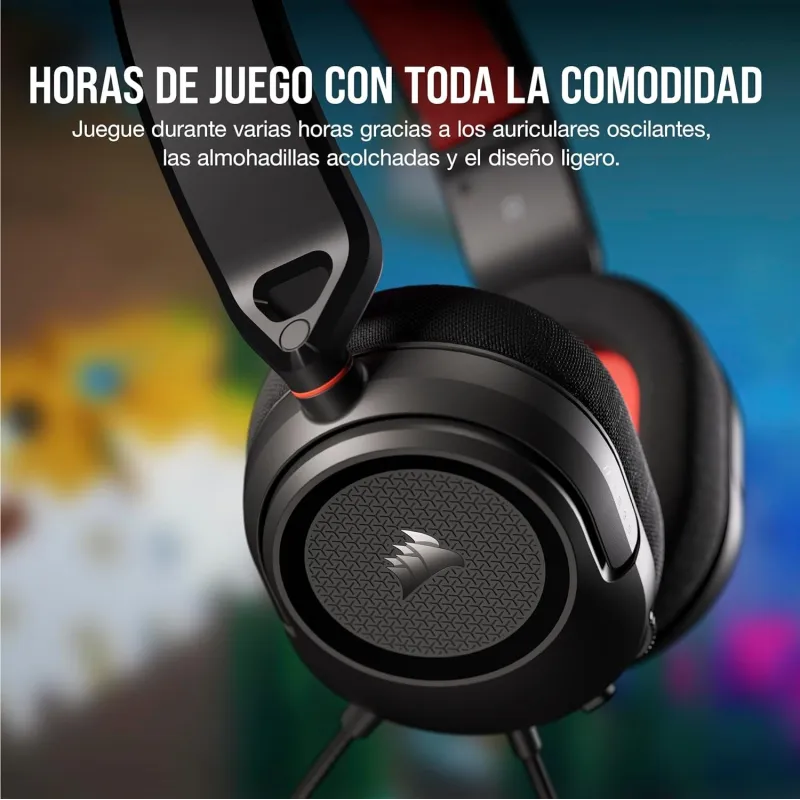 AGRADABLES PARA LAS OREJAS: Una estructura ligera, auriculares giratorios y almohadillas de tejido suave permiten disfrutar de sesiones de juego más largas.