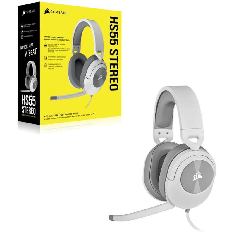 Auriculares Corsair HS55 STEREO con Micrófono, conexión mini Jack, para Gaming, color Blanco