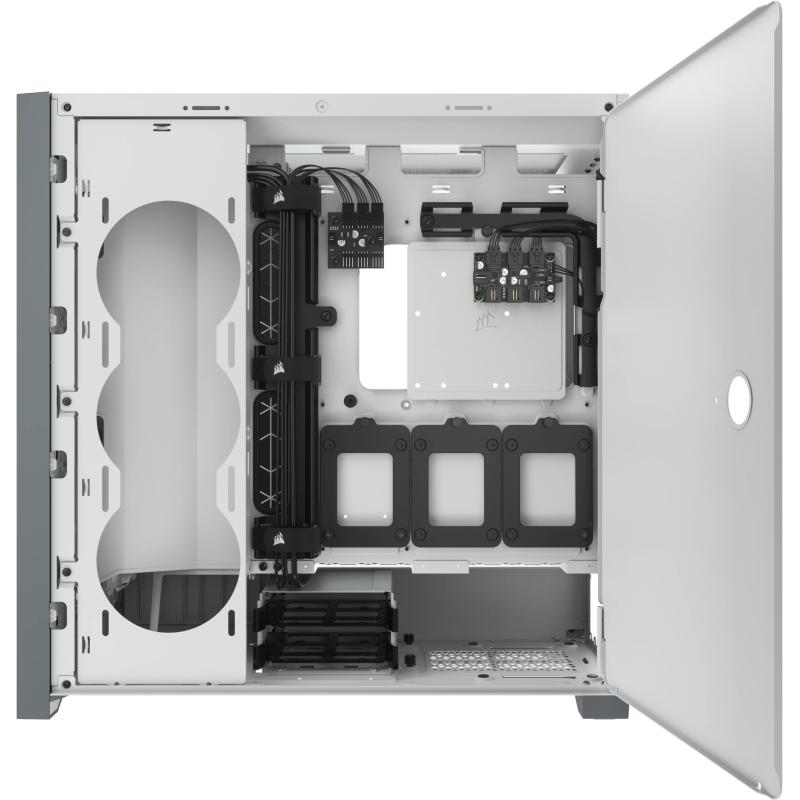 CHASIS INTELIGENTE PARA PC ATX SEMITORRE CON CRISTAL TEMPLADO ICUE 5000X RGB, BLANCO: El CORSAIR iCUE 5000X RGB es un chasis semitorre ATX que deja ver el PC y no sus cables. Cuatro paneles increíbles de cristal templado y tres ventiladores CORSAIR SP RGB ELITE que exponen su PC.