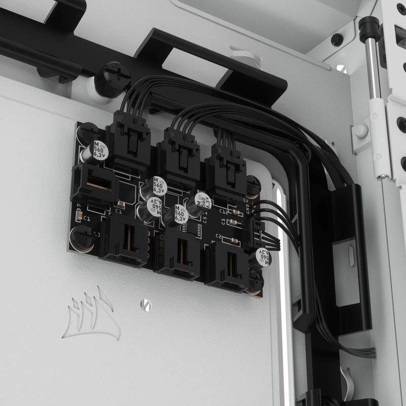 ILUMINACIÓN RGB INTELIGENTE DESDE EL PRIMER MOMENTO: Controle y sincronice la iluminación RGB de hasta seis ventiladores por completo con el iCUE Lighting Node CORE incluido y el software CORSAIR iCUE.