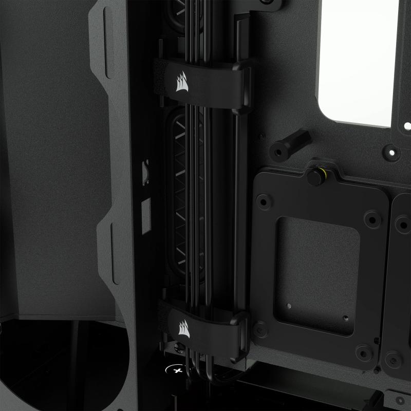 PREPARADO PARA MONTAJE DE GPU EN VERTICAL: Como incluye ranuras PCIe verticales y una montura para tornillos para colocar un cable de extensión CORSAIR PCI-Express 3.0 (se vende por separado), puede lucir su GPU y mantenerla fija al mismo tiempo.