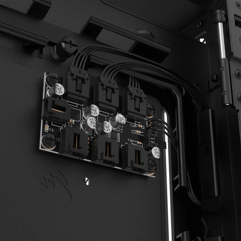 TOMA EL CONTROL DE TU REFRIGERACIÓN: Un repetidor de ventilador PWM controla los ventiladores incluidos, con conexiones para hasta seis en total. Reduzca la velocidad del ventilador cuando desee mantener su sistema silencioso o aumente cuando desee mejorar su rendimiento, todo desde un único encabezado PWM de 4 pines en su placa base.