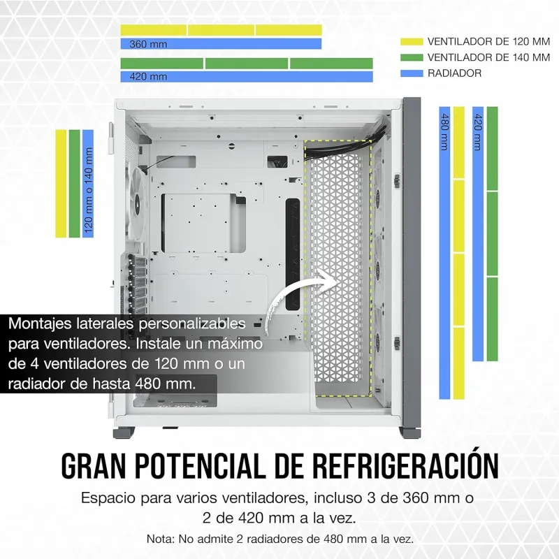 - Tamaños compatibles con el radiador frontal: 120,240,360,480 mm