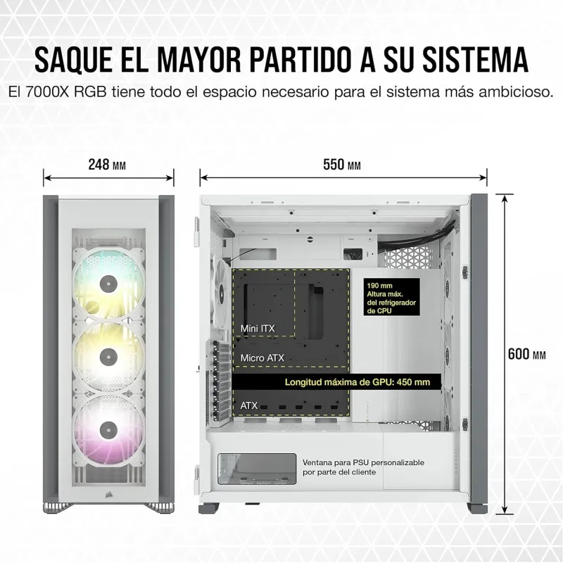 ESPACIO PARA RESPIRAR: La iCUE 7000X RGB es una de las torres más completas del mercado, pues está dotada de enormes capacidades de ampliación.