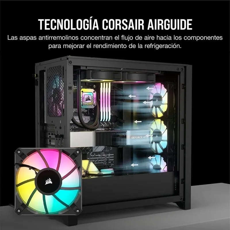 TECNOLOGÍA CORSAIR AIRGUIDE: Utiliza aspas antirremolinos para dirigir el flujo de aire concentrado y mejorar la refrigeración, ya sea de entrada, salida o instalada en radiador de refrigeración líquida o disipador.