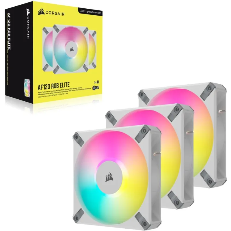 Corsair iCUE AF120 RGB ELITE Pack de 3 Ventiladores PWM 120 mm Blancos