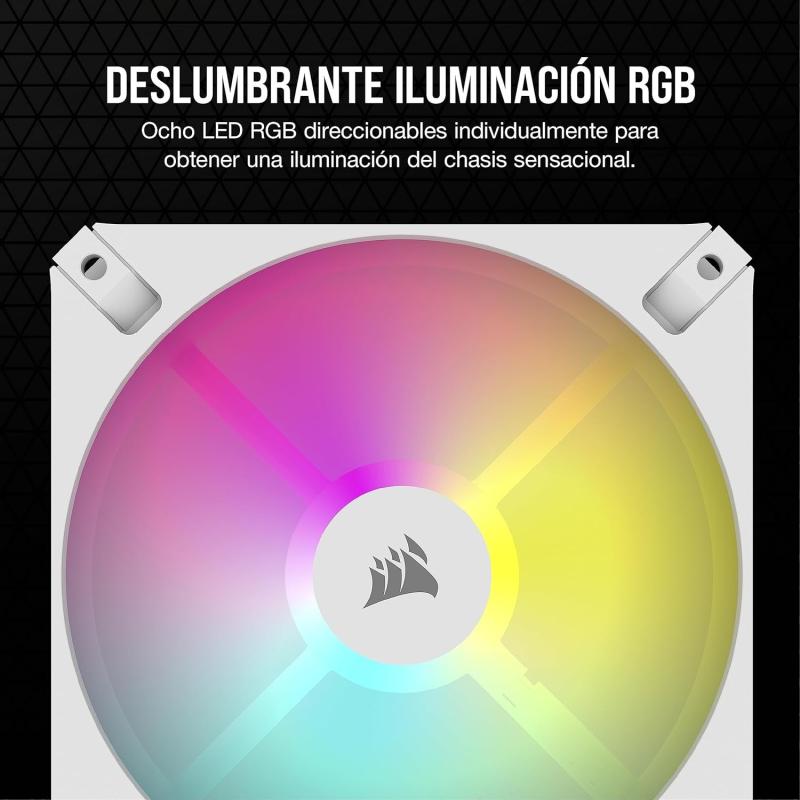 SE SIRVE CON UN ASPECTO IMPECABLE: 8 LED RGB direccionables individualmente iluminan su PC con intensos efectos de iluminación sin necesidad de controladores adicionales gracias al adaptador ARGB de 3 patillas para placa base incluido.