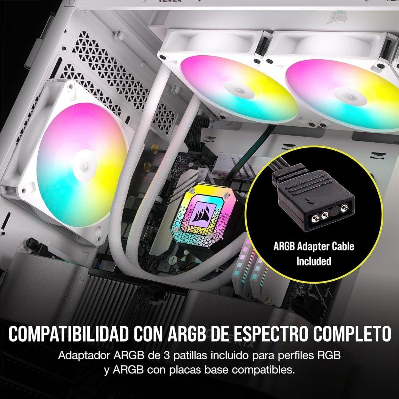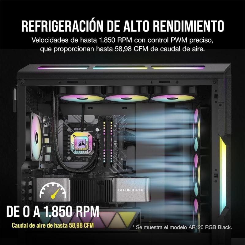 ILUMINACIÓN QUE DESTACA TU CONFIGURACIÓN: La iluminación LED multicolor no es solo un detalle estético, es una declaración de personalidad. Este ventilador añade un toque de color y vida a tu sistema, con la posibilidad de ajustar la iluminación para reflejar tu estilo único. El blanco puro del producto aporta una sensación de claridad y modernidad a tu espacio, asegurando que tu configuración destaque no solo por su rendimiento, sino también por su diseño.