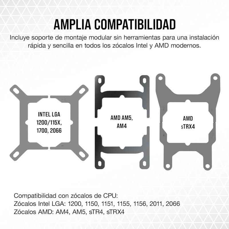 TUBOS MÁS LARGOS Y FÁCIL INSTALACIÓN: La mayor longitud de los tubos de 400 mm (H100i, H115i) / 450 mm (H150i, H170i), los soportes de montaje modulares sin herramientas y la pasta térmica preaplicada XTM70 facilitan la instalación en los zócalos más recientes de placas base Intel y AMD, incluidos los LGA 115X, 1200, 1700, 2011 y 2066, además de AMD Socket AM4, AM5 y sTRX4/sTR4.
