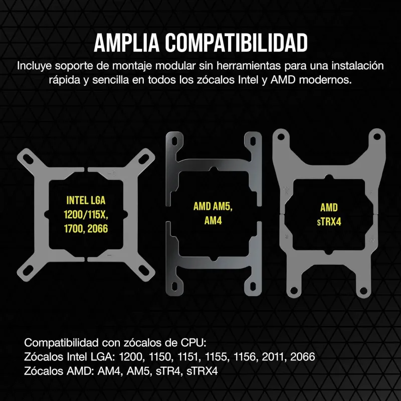 TUBOS MÁS LARGOS Y FÁCIL INSTALACIÓN: La mayor longitud de los tubos de 400 mm (H100i, H115i) / 450 mm (H150i, H170i), los soportes de montaje modulares sin herramientas y la pasta térmica preaplicada XTM70 facilitan la instalación en los zócalos más recientes de placas base Intel y AMD, incluidos los LGA 115X, 1200, 1700, 2011 y 2066, además de AMD Socket AM4, AM5 y sTRX4/sTR4.