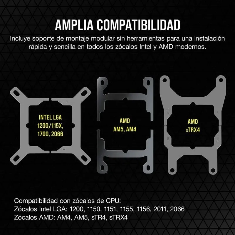 COMPATIBILIDAD SIN LÍMITES: Este sistema trasciende los límites en términos de compatibilidad. Soporta una amplia gama de sockets de procesador, incluyendo LGA 1150, LGA 1151, LGA 1155, LGA 1156, LGA 1200, LGA 1700, LGA 2011, LGA 2066, Socket AM3, Zócalo AM4, Zócalo AM5, Socket sTR4, y Socket sTRX4, ofreciendo una solución de enfriamiento para casi cualquier configuración moderna.