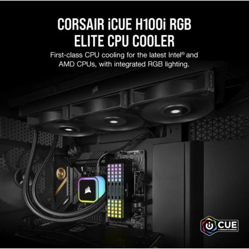 ENFRIADOR LÍQUIDO DE CPU ICUE H100I RGB ELITE: Los refrigeradores líquidos para CPU CORSAIR iCUE H100i RGB ELITE Series ofrecen refrigeración de CPU de primera clase, iluminación RGB integrada y una estética refinada, equipados con ventiladores CORSAIR AF ELITE Series PWM que ofrecen un potente flujo de aire y modos de refrigeración especializados de bajo ruido.
