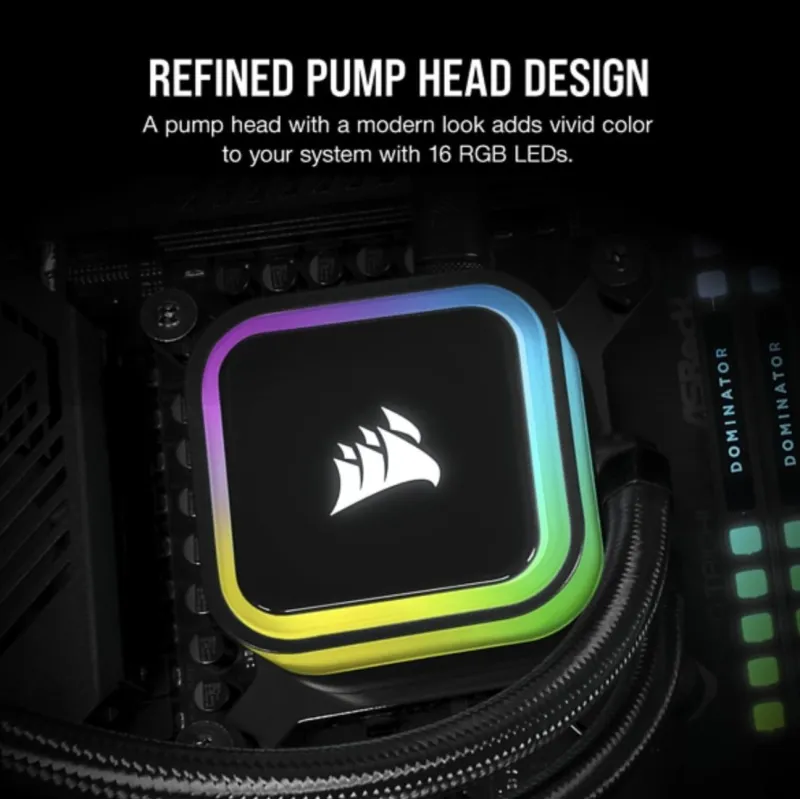 ESTILO DINÁMICO E ILUMINACIÓN: Con 16 LED RGB en un diseño de cabezal de bomba moderno, la serie ELITE ofrece la mejor refrigeración con un aspecto a la altura. Produzca efectos de iluminación asombrosos y personalizables con el software CORSAIR iCUE para añadir un estilo y colores vivos al sistema.