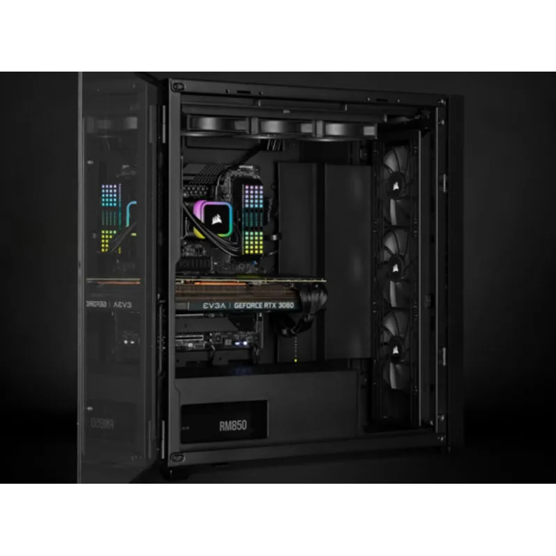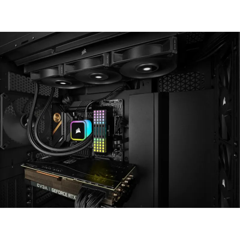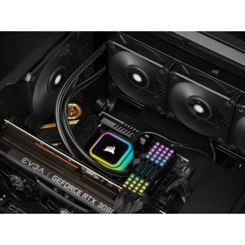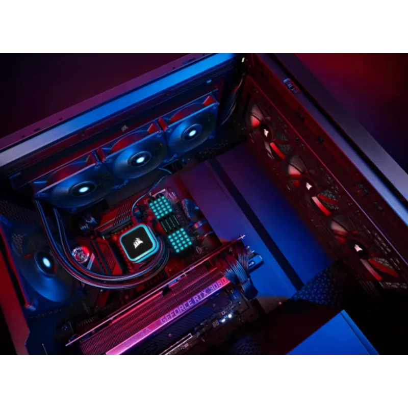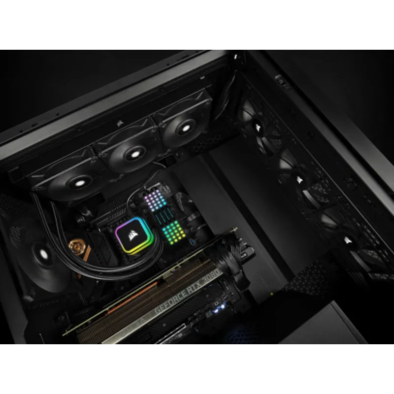 DISEÑADO PARA LA PERFECCIÓN: El negro profundo del radiador de aluminio y los dos ventiladores robustos son la base de un diseño que no solo es funcional sino también elegante. La compatibilidad con CORSAIR iCUE permite una personalización sin precedentes, llevando la experiencia de usuario a un nuevo nivel.
