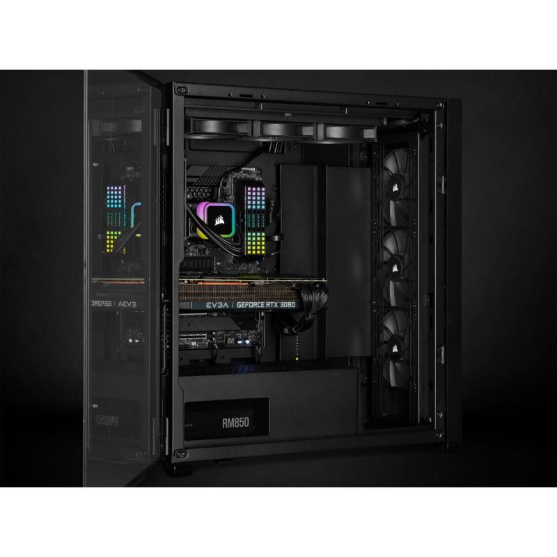 MODOS DE REFRIGERACIÓN ESPECIALIZADOS: El ventilador Zero RPM y los modos de refrigeración especializados de velocidad variable de la bomba en iCUE mantienen el ruido al mínimo cuando el sistema está en reposo o bajo cargas ligeras.