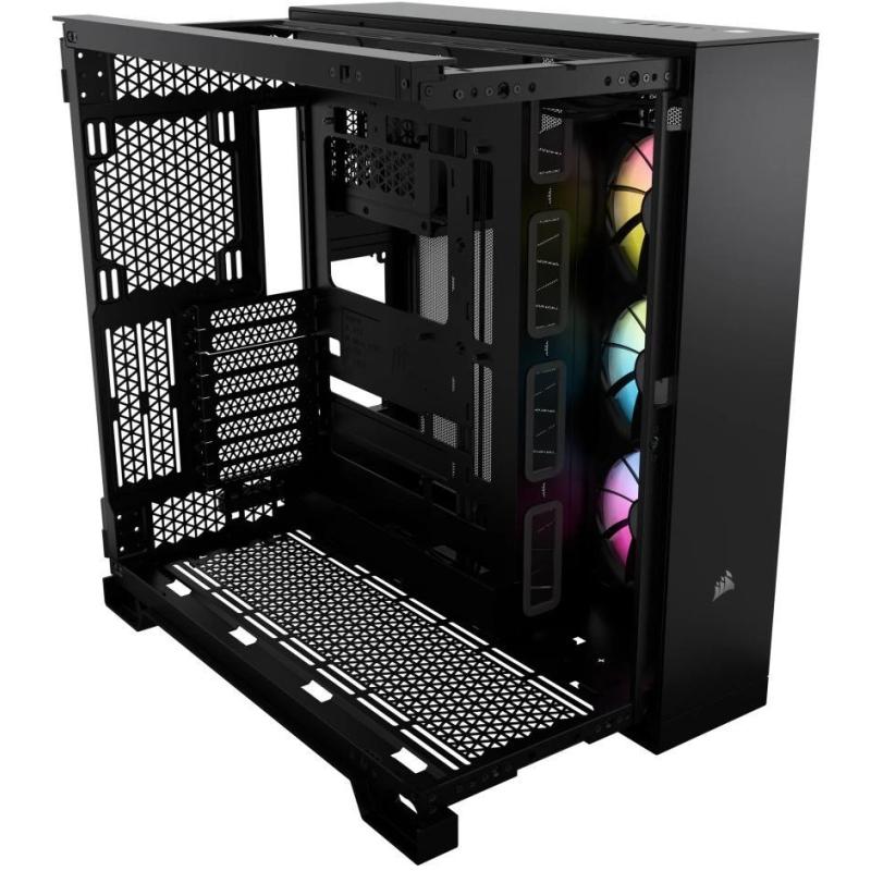 Torre Corsair iCUE LINK 6500X RGB ATX con vidrio templado 11 ranuras de expansión y soporte para refrigeración líquida, color Negra