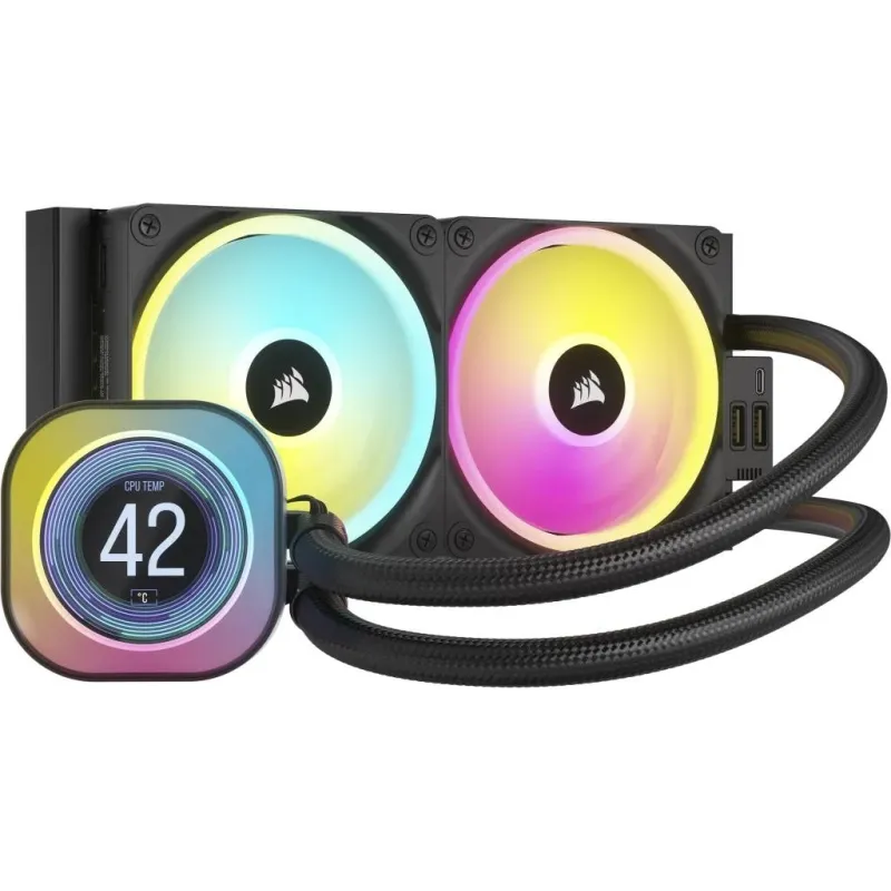 REFRIGERADOR LÍQUIDO PARA CPU ICUE LINK H100I LCD: Un potente refrigerador de CPU todo en uno con pantalla LCD IPS ultrabrillante de 2,1” que aprovecha la revolucionaria tecnología iCUE LINK para conseguir un diseño de forma más fácil, rápida y depurada que nunca.