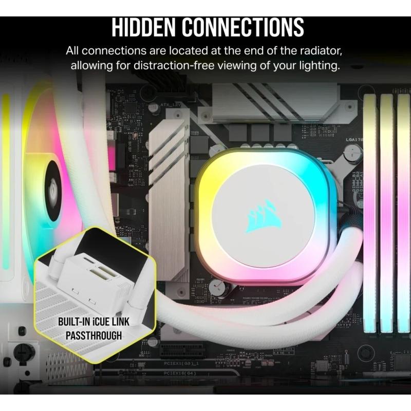 REFRIGERADOR LÍQUIDO PARA CPU ICUE LINK H100I RGB AIO, BLANCO: Un potente refrigerador de CPU todo en uno que aprovecha la revolucionaria tecnología iCUE LINK para conseguir un diseño de forma más fácil, rápida y depurada que nunca.