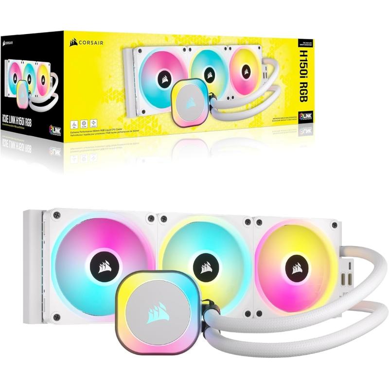 Refrigeración Líquida Corsair iCUE LINK H150i RGB AIO con tamaño de 360mm, Velocidad de hasta 2400 RPM, Color Blanco