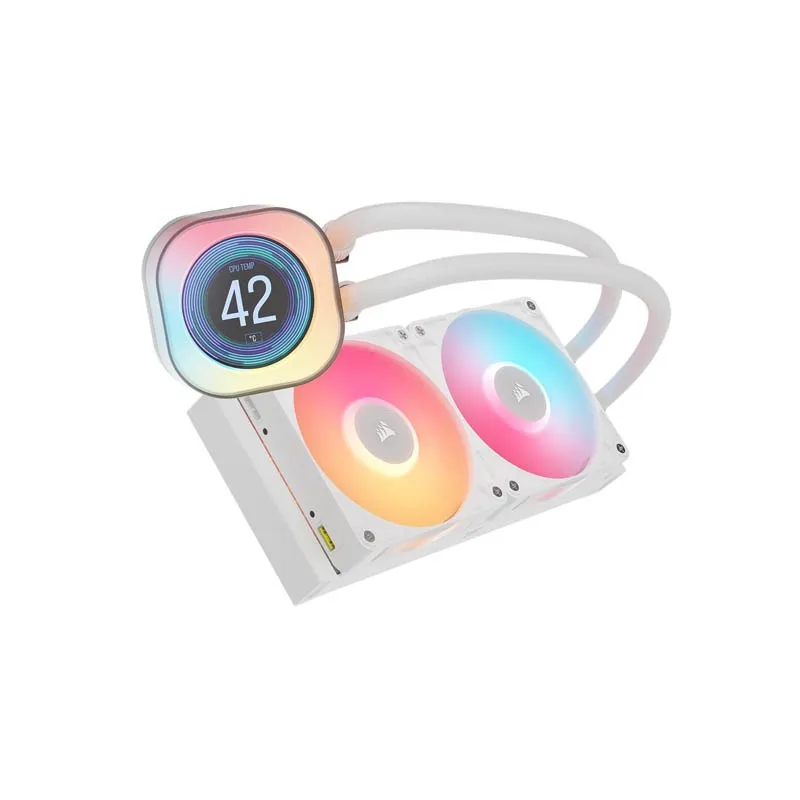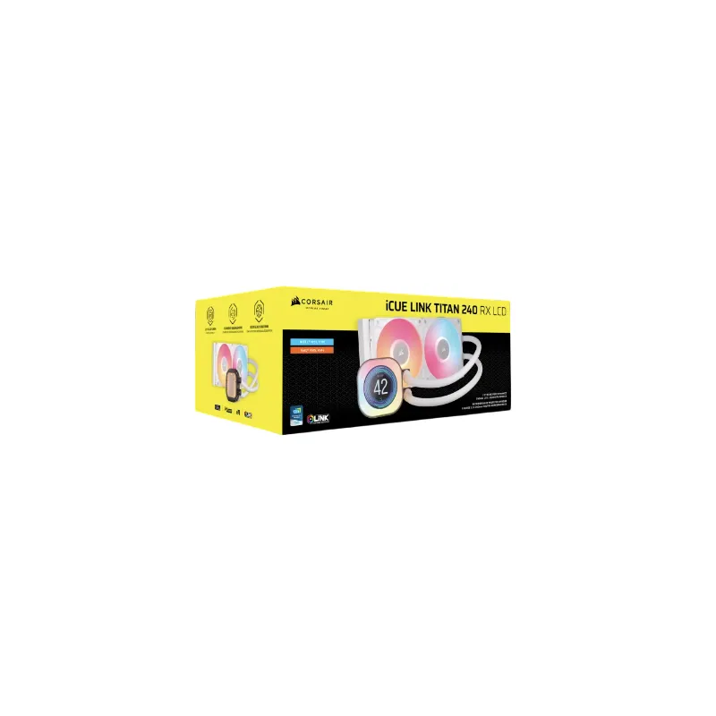 ENFRIAMIENTO LÍQUIDO PARA CPU ICUE LINK TITAN 240 RX LCD - BLANCO: El CORSAIR iCUE LINK TITAN RX LCD ofrece un enfriamiento de alto rendimiento y ultra silencioso con un rendimiento térmico optimizado, conectividad simplificada de iCUE LINK e iluminación RGB dinámica.