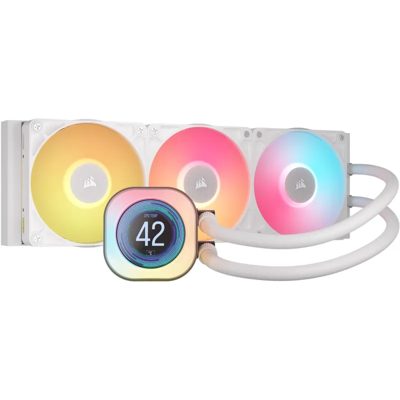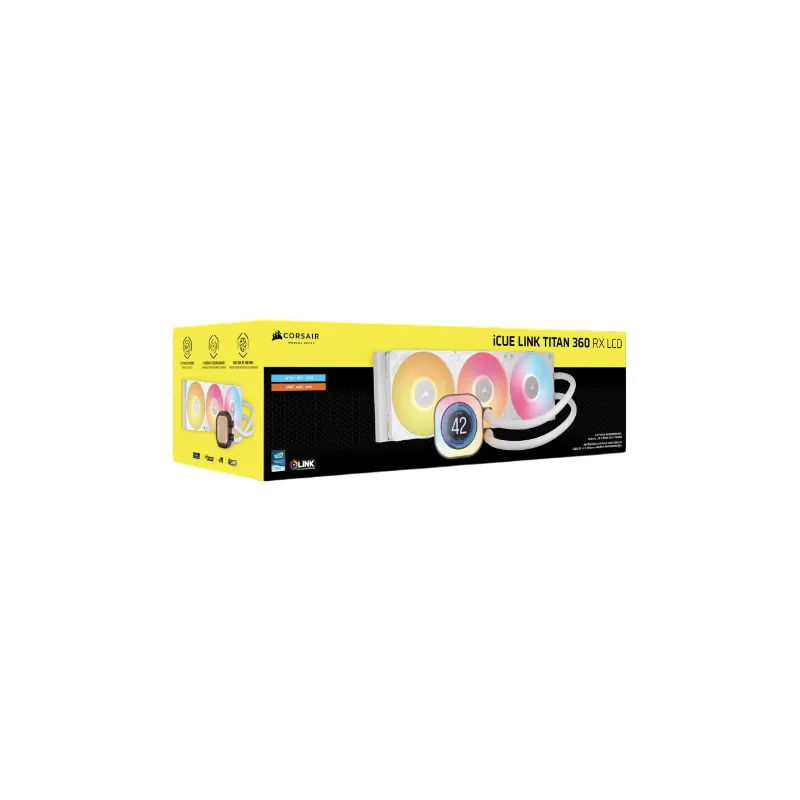 ENFRIAMIENTO LÍQUIDO DE CPU ICUE LINK TITAN 360 RX LCD - BLANCO: El CORSAIR iCUE LINK TITAN RX LCD ofrece un enfriamiento de alto rendimiento y ultra silencioso con un rendimiento térmico optimizado, conectividad iCUE LINK simplificada e iluminación RGB dinámica.