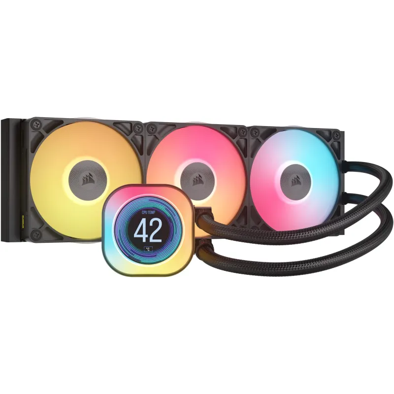 ENFRIAMIENTO LÍQUIDO DE CPU ICUE LINK TITAN 360 RX LCD: El CORSAIR iCUE LINK TITAN RX LCD ofrece un enfriamiento de alto rendimiento y ultra silencioso con un rendimiento térmico optimizado, conectividad simplificada de iCUE LINK e iluminación RGB dinámica.