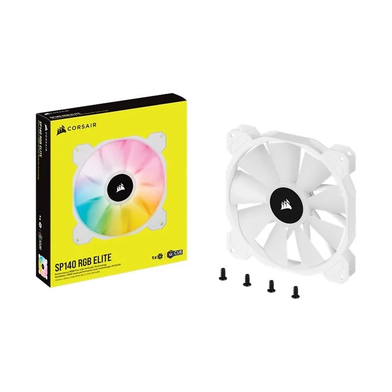 VENTILADOR PWM DE 140 MM ICUE SP140 RGB ELITE PERFORMANCE — PAQUETE SIMPLE: El CORSAIR iCUE SP140 RGB ELITE Performance Fan incluye ocho LED RGB intensos y direccionables individualmente, que se añaden a la brillante iluminación RGB del sistema de refrigeración SP RGB ELITE.