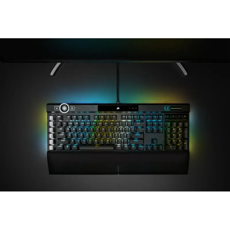 LA PIEZA CENTRAL DE TU CONFIGURACIÓN: El diseño refinado del K100 RGB presenta un marco de aluminio duradero y retroiluminación RGB dinámica por tecla, acentuada por un LightEdge RGB de tres lados y 44 zonas.