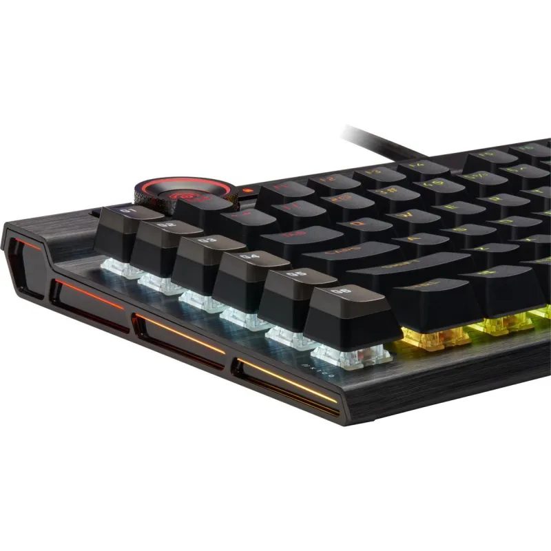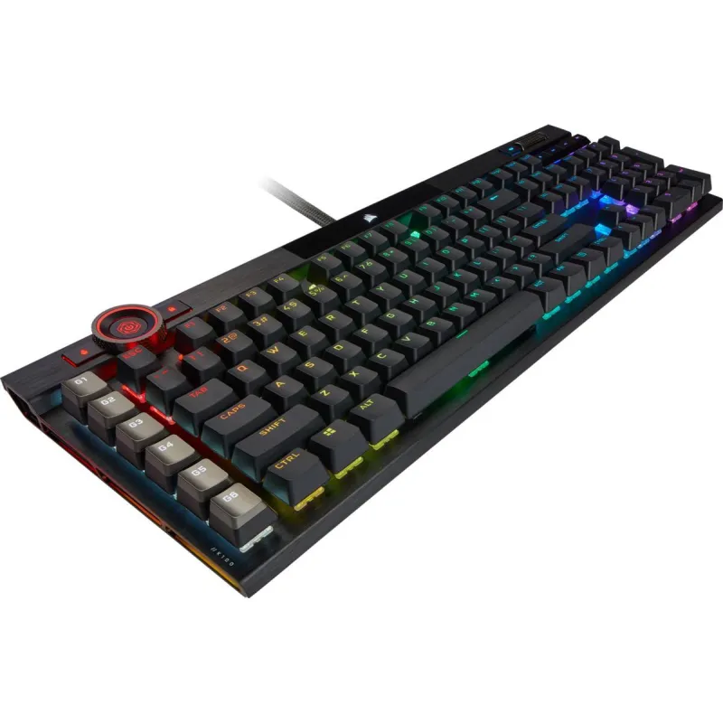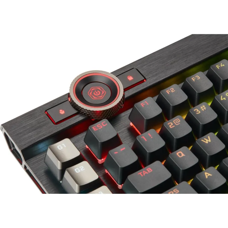 EL INCOMPARABLE TECLADO GAMING ÓPTICO-MECÁNICO CORSAIR K100 RGB: Combina un impresionante diseño de aluminio, iluminación RGB por tecla con la poderosa Tecnología de Hiperprocesamiento CORSAIR AXON y los interruptores de teclas CORSAIR OPX RGB.