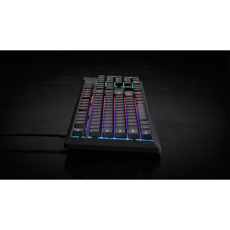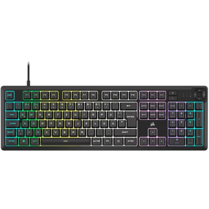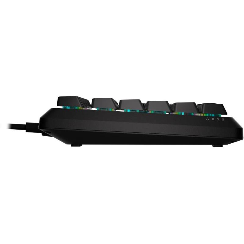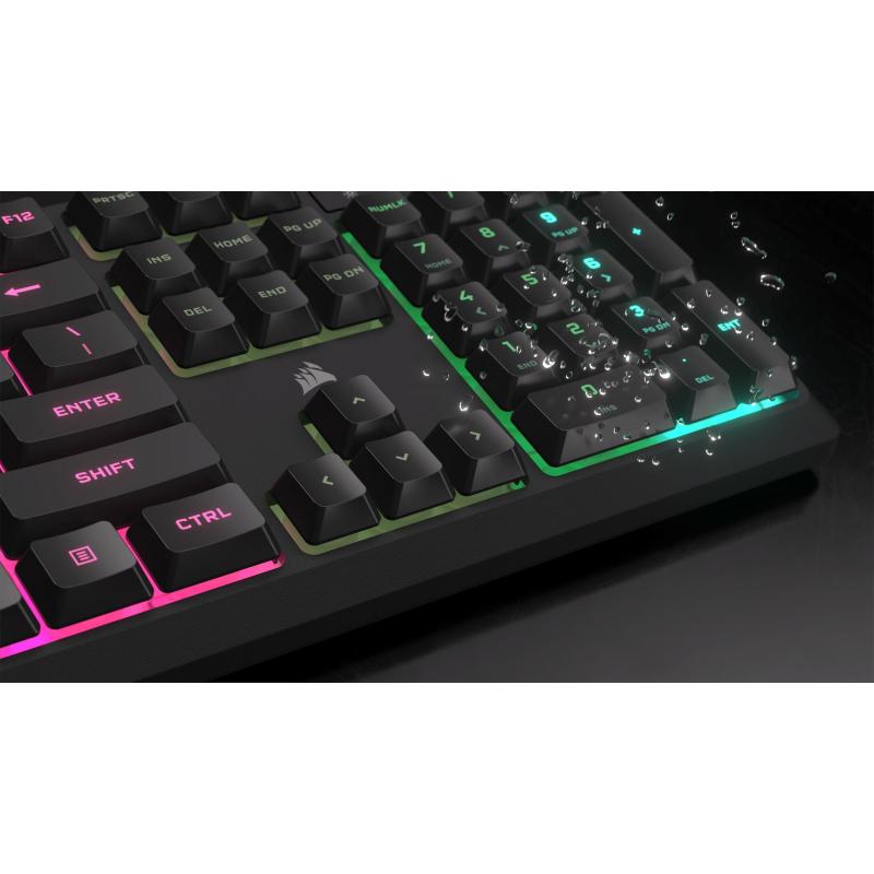 Teclado Corsair K55 CORE con retroiluminación RGB resistencia a derrames teclas programables y diseño completo QWERTY, color Negro