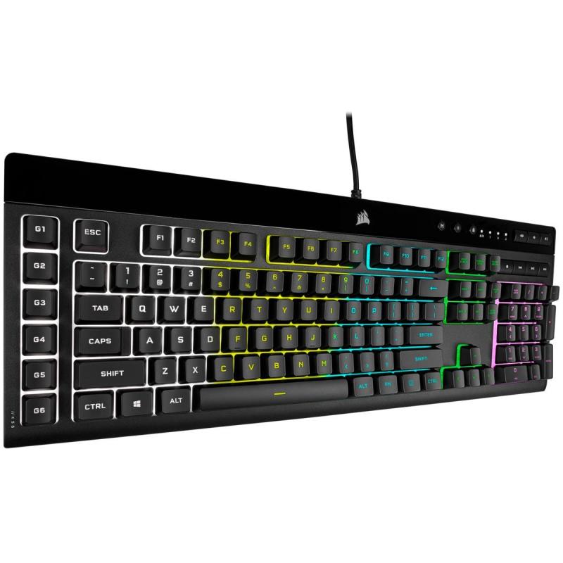 Teclado Corsair K55 RGB PRO diseño completo retroiluminación LED RGB resistente a derrames 12 teclas simultáneas, color Negro