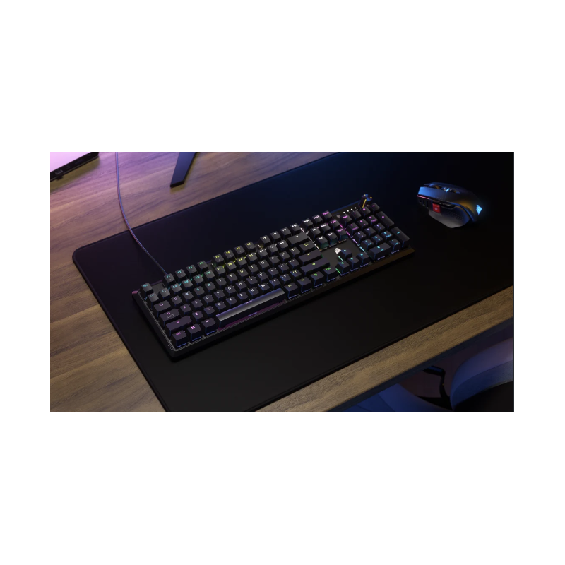COMPATIBILIDAD Y CONECTIVIDAD UNIVERSAL: Este teclado es compatible con PC y Mac®, gracias a su conectividad USB 3.0 o 3.1 Tipo-A. Esto asegura que independientemente del sistema que utilices, la experiencia se mantenga siempre al más alto nivel. Con su software de teclado CUE, ahora conocido como iCUE, podrás personalizar y optimizar cada aspecto del teclado, desde la iluminación hasta las macros, adaptándolo completamente a tu estilo de juego.