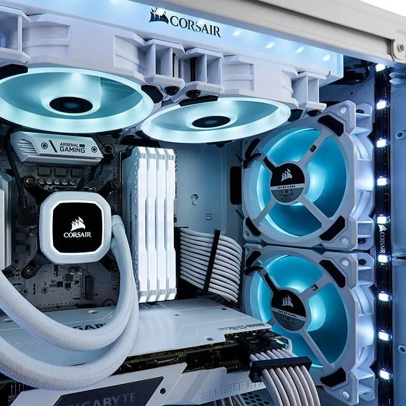 CONTROL INTELIGENTE, POSIBILIDADES ILIMITADAS: Cree espectaculares patrones y efectos de iluminación con el potente software CORSAIR iCUE para dar vida a su sistema con la iluminación RGB dinámica, sincronizada en todos sus productos compatibles con iCUE. Precisa CORSAIR Lighting Node PRO y condensador de ventilador LED RGB (de venta por separado).