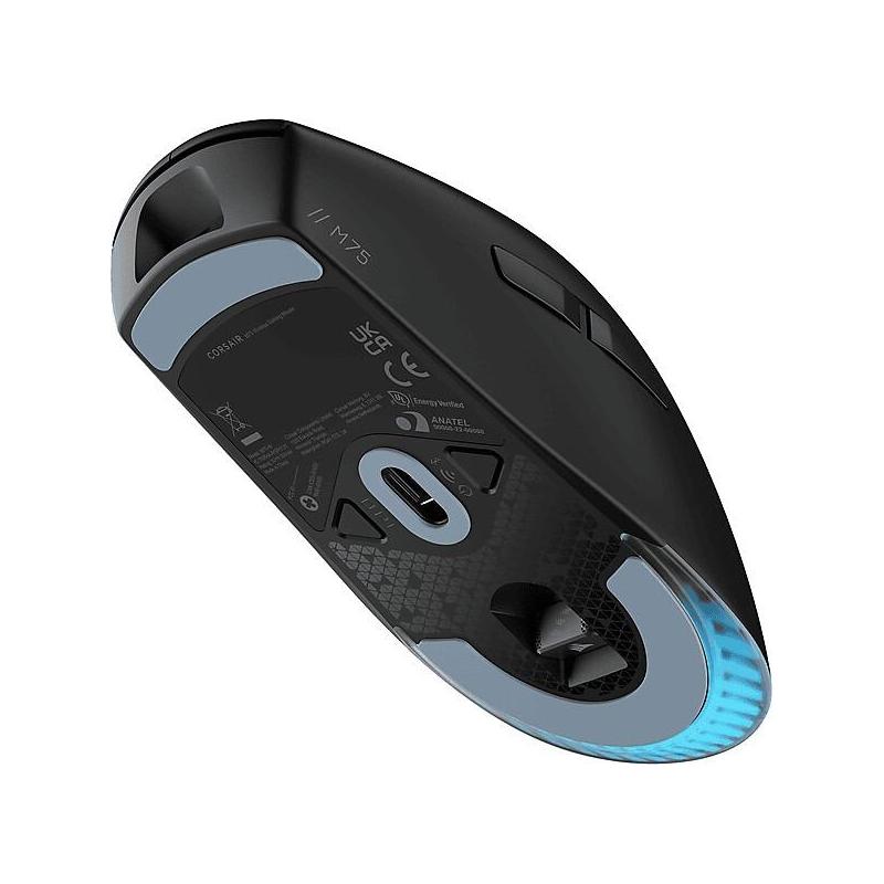 ESPECIFICACIONES DEL PRODUCTO: Corsair M75. Factor de forma: Ambidextro. Tecnología de detección de movimientos: Óptico, Interfaz del dispositivo: RF inalámbrico, Resolución de movimiento: 26000 DPI, Tipo de desplazamiento: Rueda, Aceleración (máx.): 50 G. Fuente de energía: Baterías. Color del producto: Negro