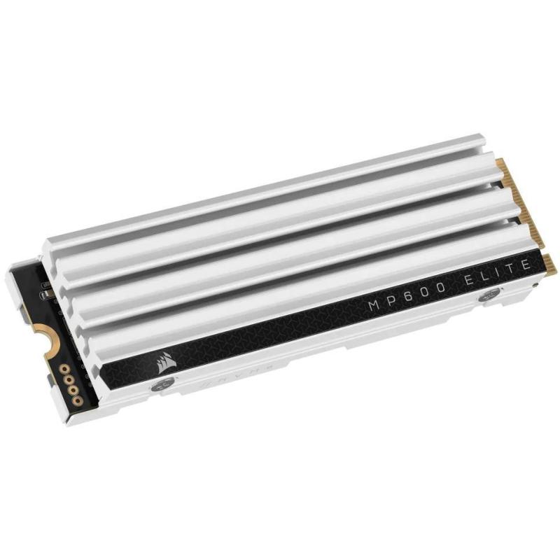 Disco Duro SSD Corsair MP600 ELITE 2 TB PCIe 4.0 M.2 velocidad de lectura 7000 MB/s disipador térmico compatible con PS5, color Blanco